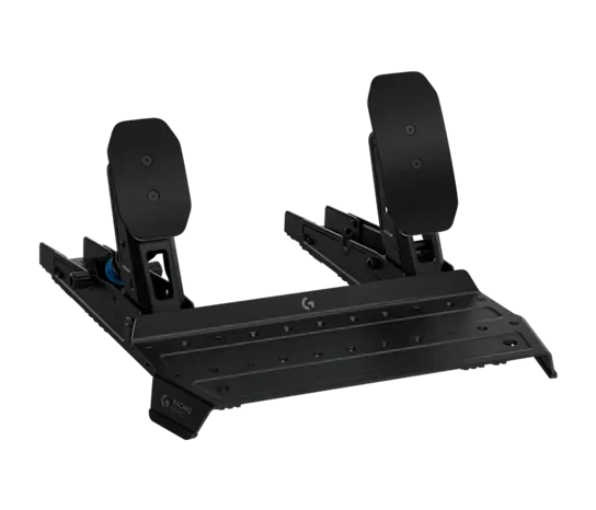 - Pédales RS: accélérateur à capteur Hall; frein à cellule de charge de 75 kg (réglable de 1 à 75 kg depuis le G HUB) avec des amortisseurs/espaceurs de dureté variable ; rallonges de plancher et clips pour tapis.